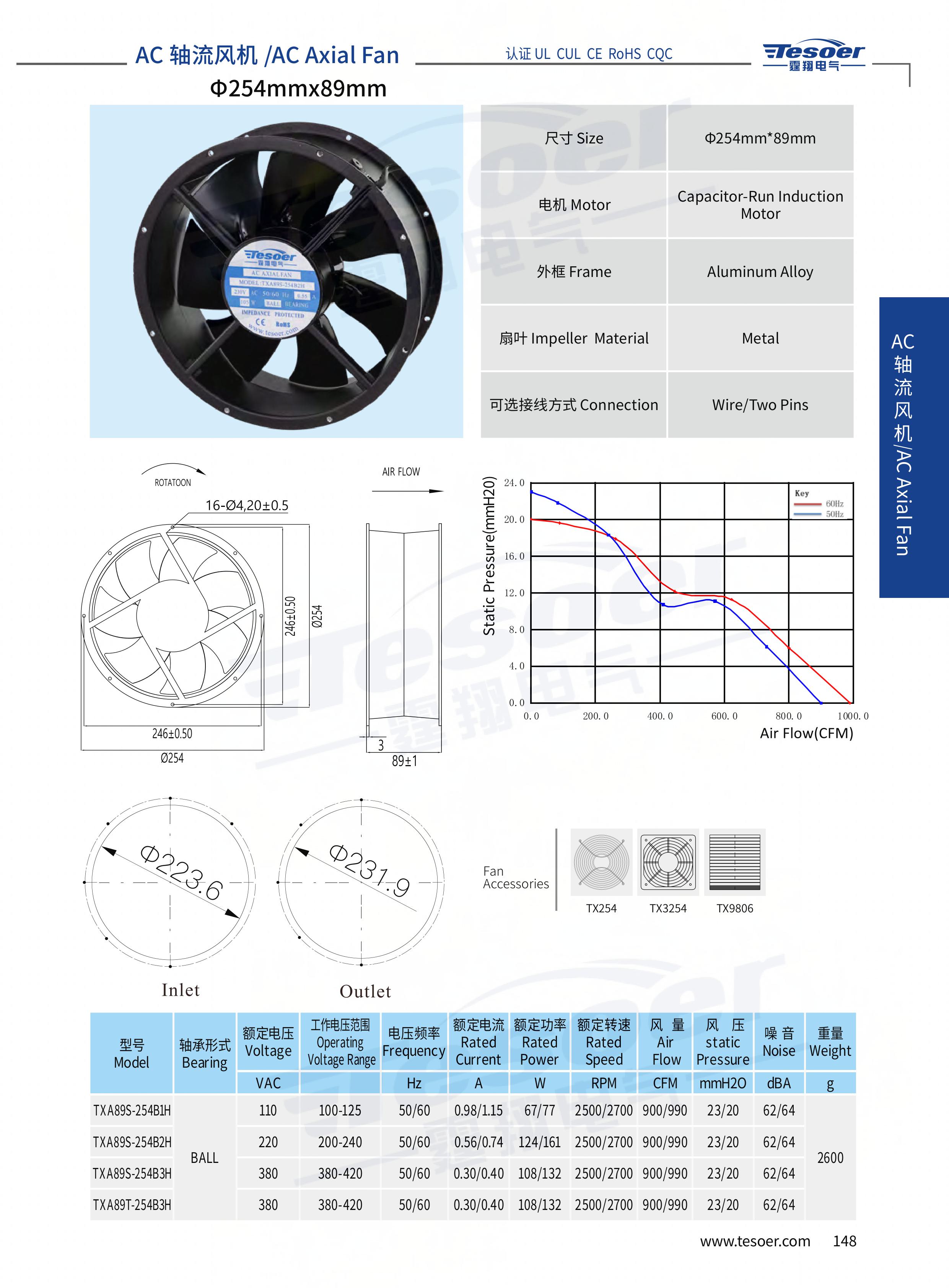 風扇尺寸:φ254*89mm