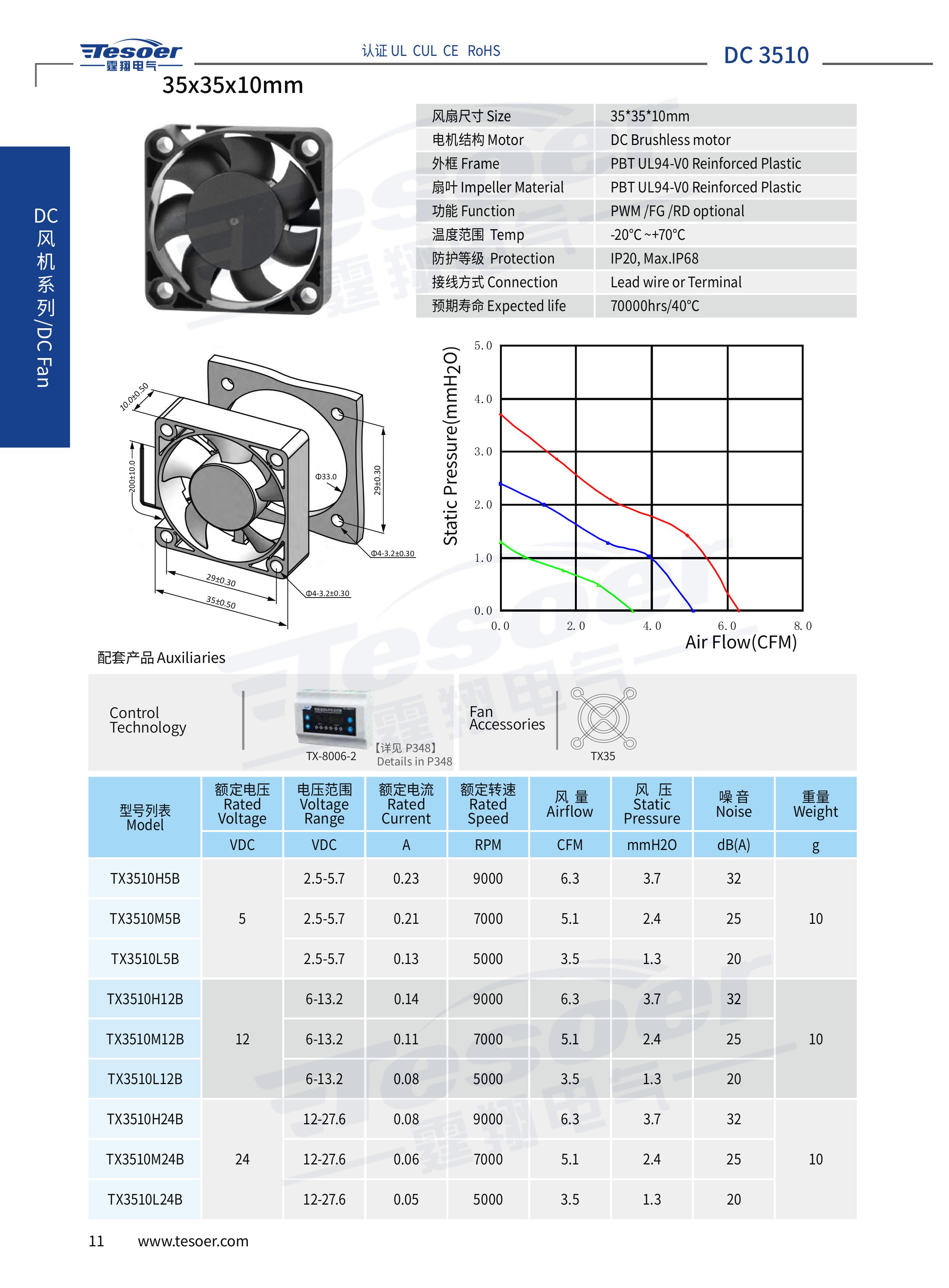 風扇尺寸:35*35*10mm